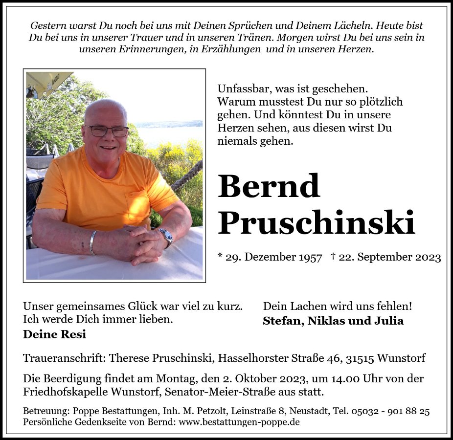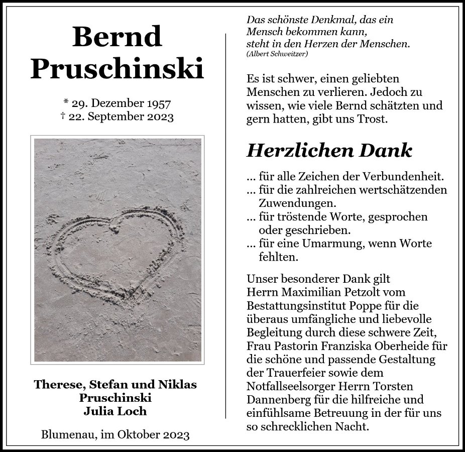 Heute bist Du bei uns in unserer Trauer