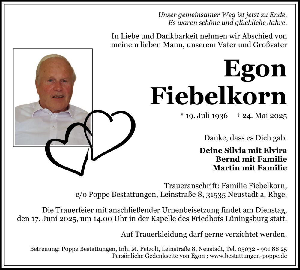 aufrichtiges Mitgefühl beim Heimgang unseres lieben Egon.