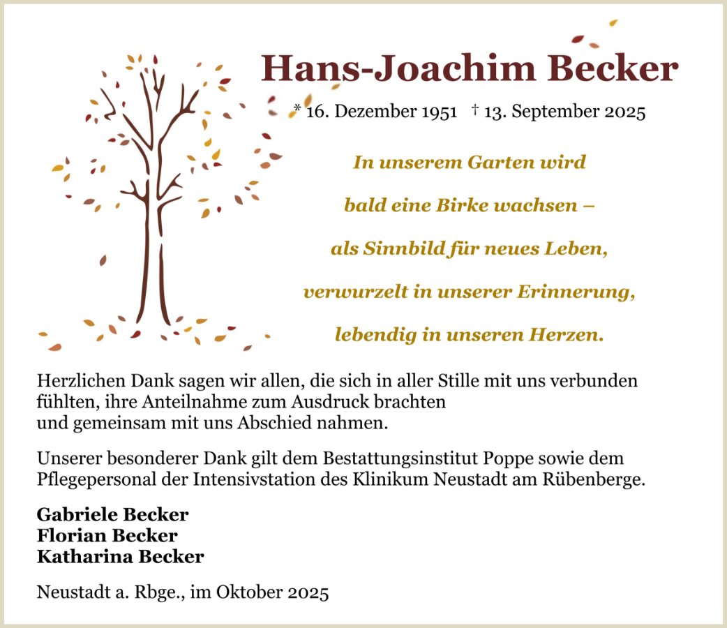 Liebe Familie Becker,