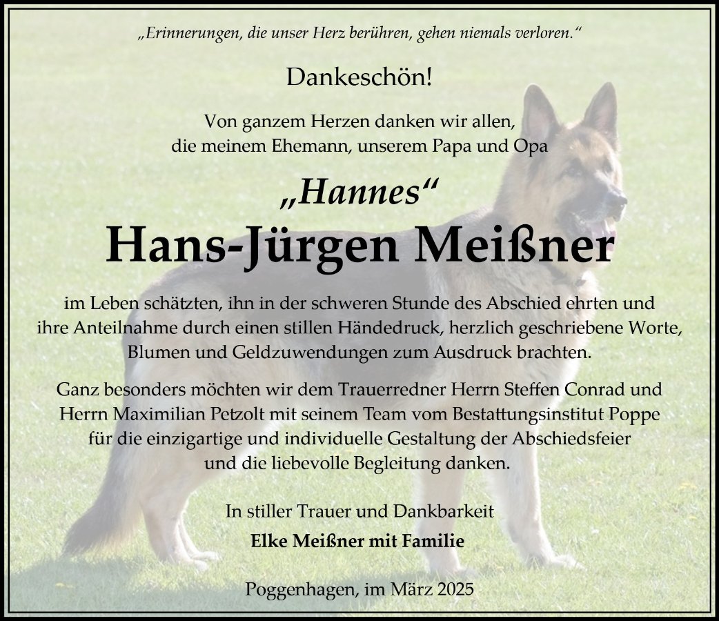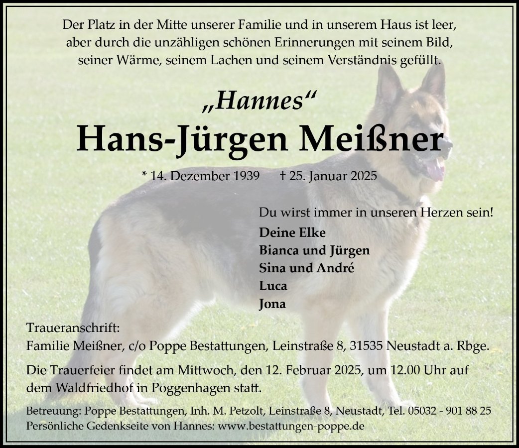 Euch wünschen wir die Kraft, gerade in dieser schweren Zeit dennoch Platz für Erinnerungen an die vielen schönen Jahre mit Hannes zu finden.