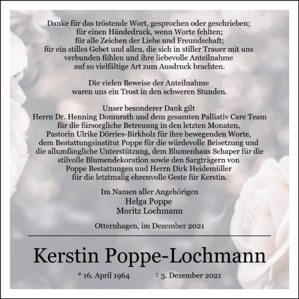 Ihnen allen unser herzlichstes Beileid; wir wünschen Ihnen in der nächsten Zeit viel Kraft und Zuversicht.