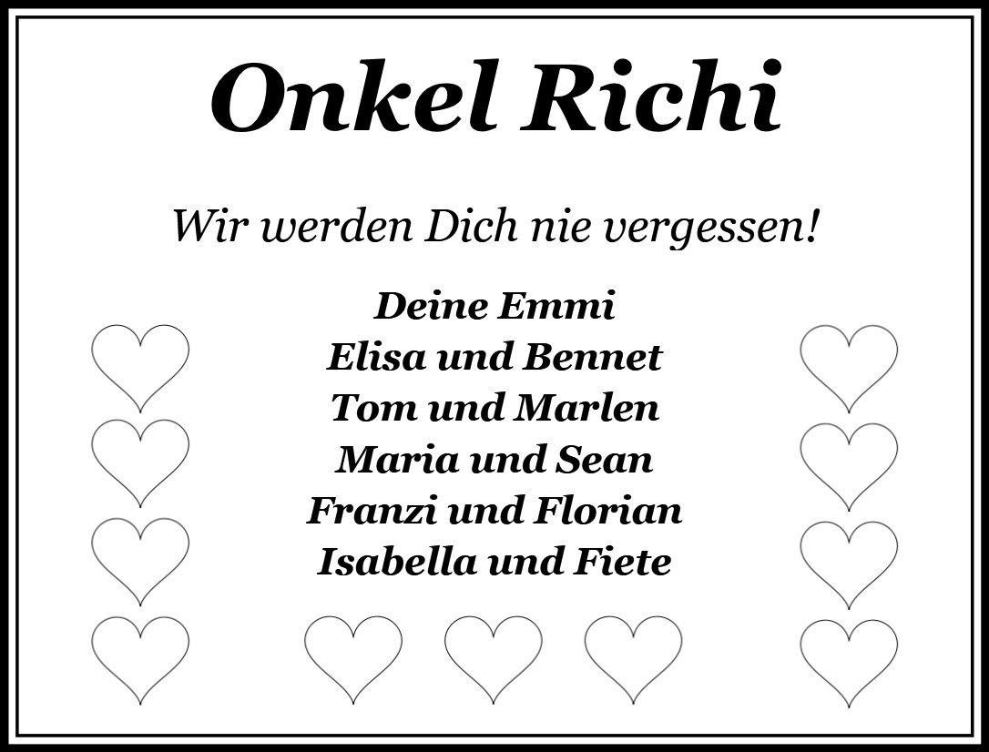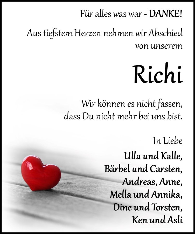 Lieber Richi, wir werden für deine Lieben immer da sein, so wie du immer für deine Lieben da warst.