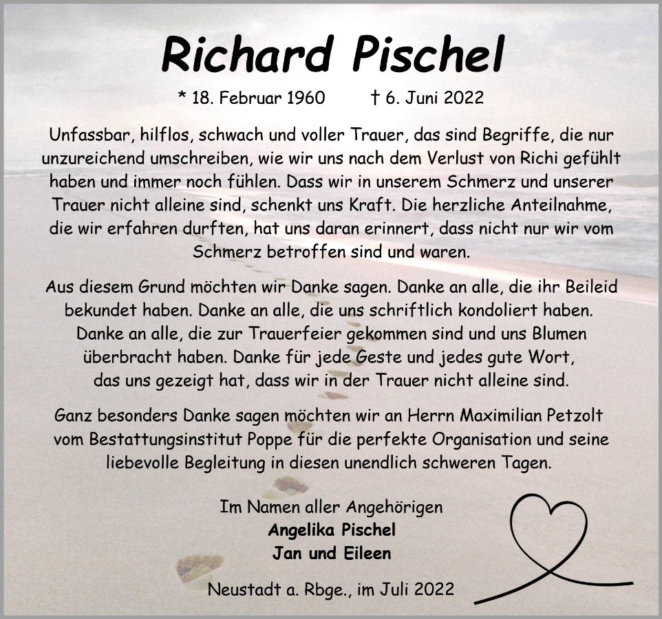 Du da oben: warum hast du Richard, den liebenswertesten, hilfsbereitesten und besten Freund so früh zu dir geholt? Wir verstehen deine Entscheidung nicht! Wir hätten ihn so gern noch lange bei uns gehabt.